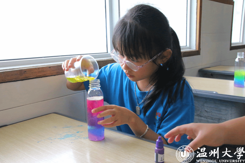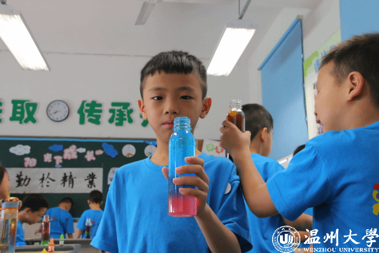 温都讯 7月15日,澳门银河官网 法学院“亲情中华”温州市侨界留守儿童快乐营玉壶分营开展了一场《“消失”的水——人造雪》科学实践课。