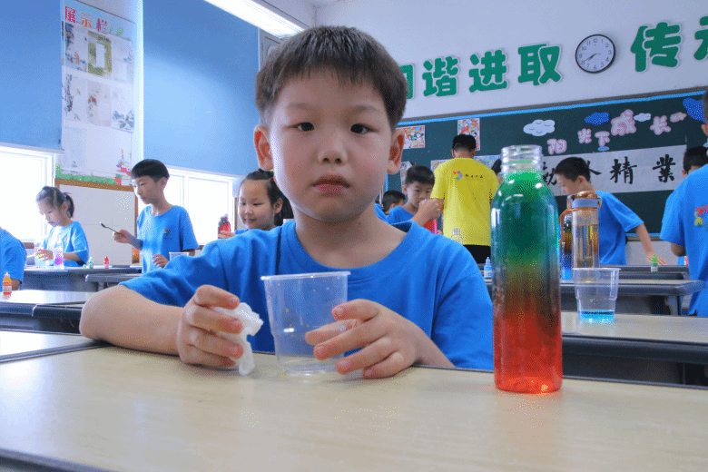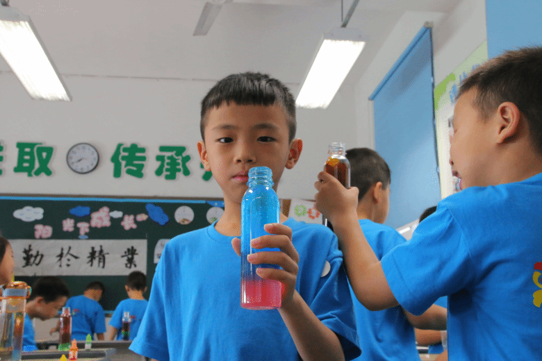 温都讯 7月15日,澳门银河官网 法学院“亲情中华”温州市侨界留守儿童快乐营玉壶分营开展了一场《“消失”的水——人造雪》科学实践课。