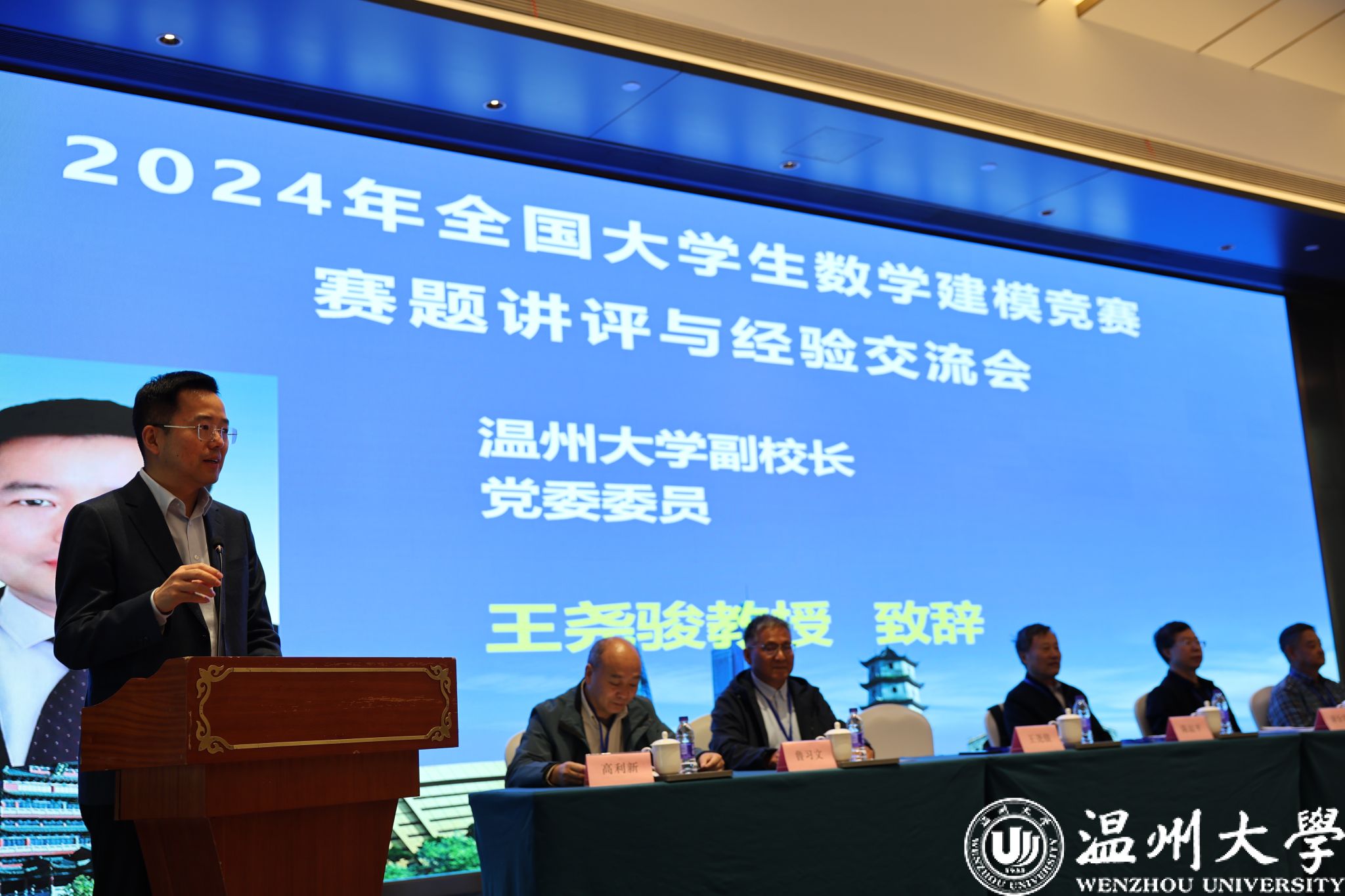 开幕式上,澳门银河官网 副校长王尧骏致辞,介绍了温州“中国数学家之乡”底蕴,近百年来走出了200多名享誉中外的数学家。他同时介绍了澳门银河官网 学科建设、人才培养等方面的成果。他表示,银河 师生近年来在全国大学生数学建模竞赛中收获颇丰,彰显了教育教学质量及温州在数学人才培养上的独特优势,表达了共同推进国内高校数学建模的教学与竞赛建设的美好愿景。