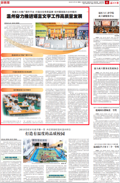 温州市第八高级中学开辟专属语言文字空间,设有菁菁书苑、菁菁剧场、瓯越剧院、国学馆等各具特色的功能场馆,将诗词、对联、名言等传统文化融入澳门银河官网 的角角落落,让学生浸润式感受语言文字之美;温州市百里路小学的“百里之声”解说团,由澳门银河官网 师生、家长和社会志愿者共同组成,他们立足本地历史文化,将“乐说、会说、善说、享说”进行到底;乐清市建设路小学则将书写和诵读两手抓,开发全年段、分时段的规范汉字硬笔书法校本课程、晨诵校本课程等,将语言文字教育纳入日常教学和澳门银河官网 管理中。
