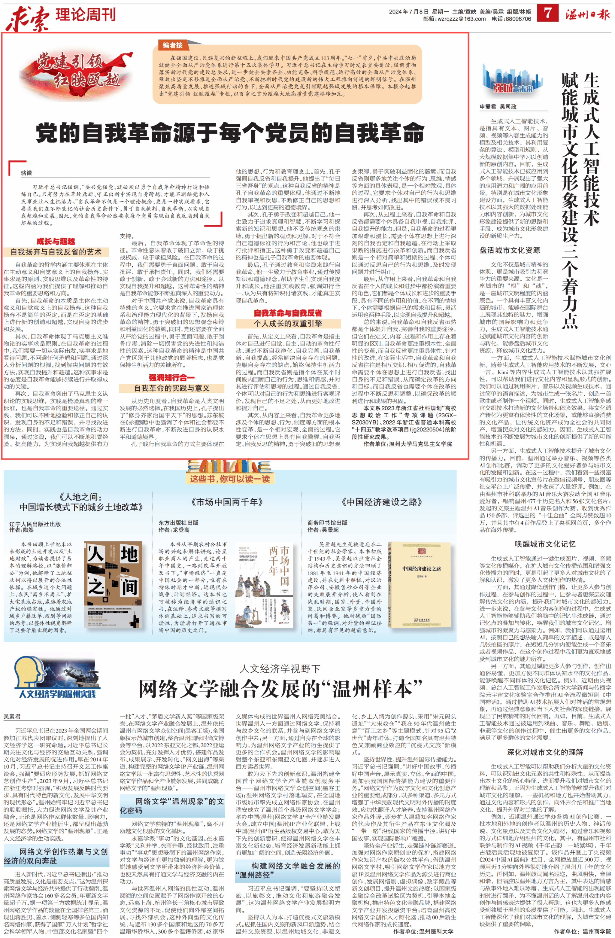 在强国建设、民族复兴的新征程上,我们迎来中国共产党成立103周年。“七一”前夕,中共中央政治局就健全全面从严治党体系进行第十五次集体学习。习近平总书记在主持学习时发表重要讲话,强调贯彻落实新时代党的建设总要求,进一步健全要素齐全、功能完备、科学规范、运行高效的全面从严治党体系,释放出坚定不移推进全面从严治党、不断把新时代党的建设新的伟大工程推向前进的鲜明信号。在温州聚焦高质量发展、推进强城行动的当下,全面从严治党更是引领瓯越强城发展的根本保障。本报今起推出“党建引领 红映瓯越”专栏,以百家之言为瓯越大地高质量党建添砖加瓦。