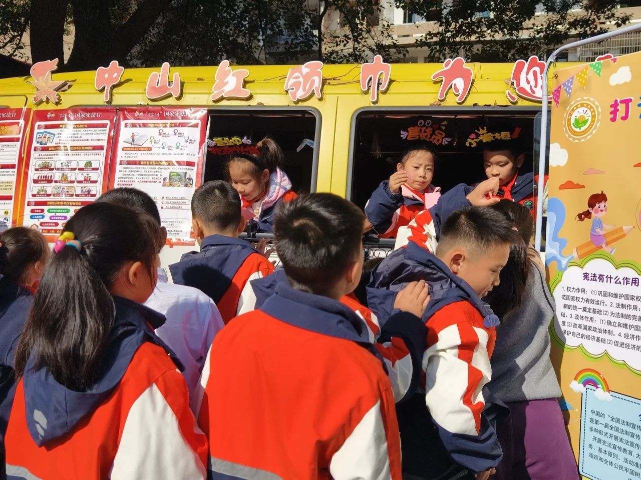 丽水市莲都区中山小学教育集团一系列学法普法活动生动开展,其中,澳门银河官网 行知巴士站活动会在每天中午1点至1点20分,开展“宪法在心中,守法伴童行”宪法知识有奖竞答,通过互动形式激发学生学习宪法的热情。
