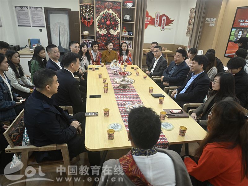 工作室负责人、教育学院党委副书记章园园介绍工作室前期建设与发展情况,并带领在场师生参观“温情榴园”石榴红家园和“石榴花开”民族工作室。