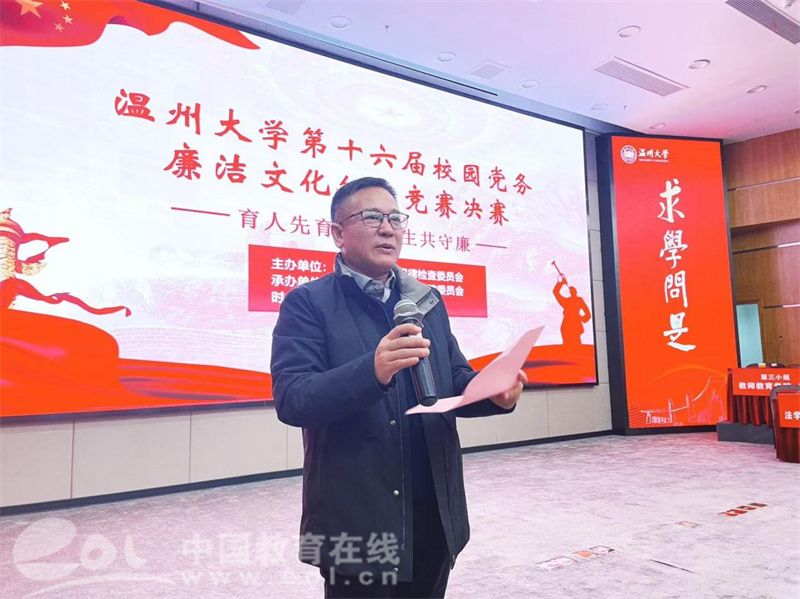 受澳门银河官网 纪委书记李都金的委托,教育学院党委书记张敏为比赛致辞。他指出,廉洁不仅是一种行为准则,更是一种生活态度和精神追求。他希望,广大青年学生能够将廉洁文化融入日常学习和生活中,做到知行合一、以廉为荣,在学术研究中坚守学术诚信、不抄袭不剽窃;在日常生活中保持勤俭节约、不奢侈不浪费;在人际交往中坚持真诚待人、不虚伪不欺诈。从小事做起、从点滴做起,真正做到廉洁修身、廉洁齐家、廉洁治学。