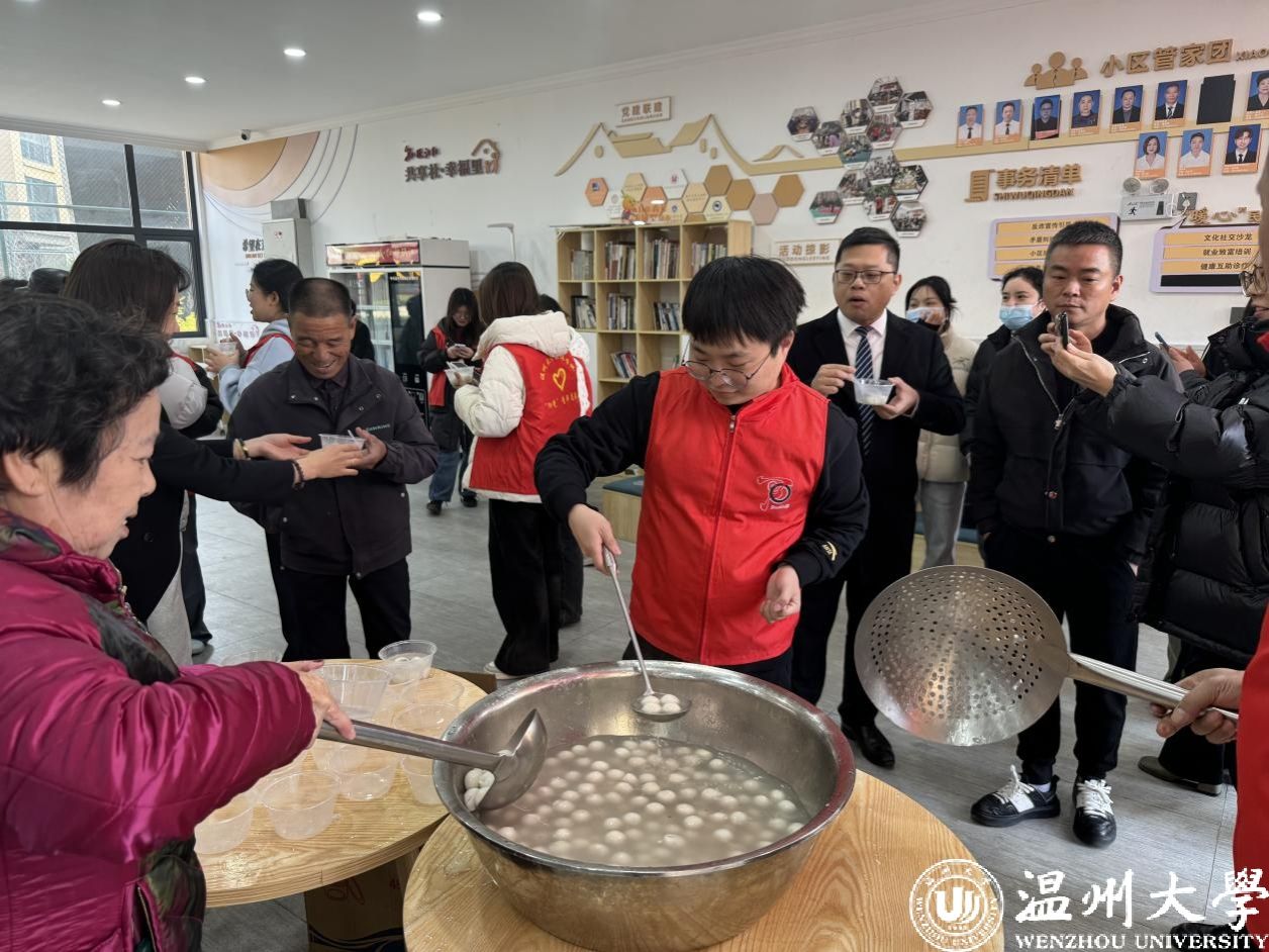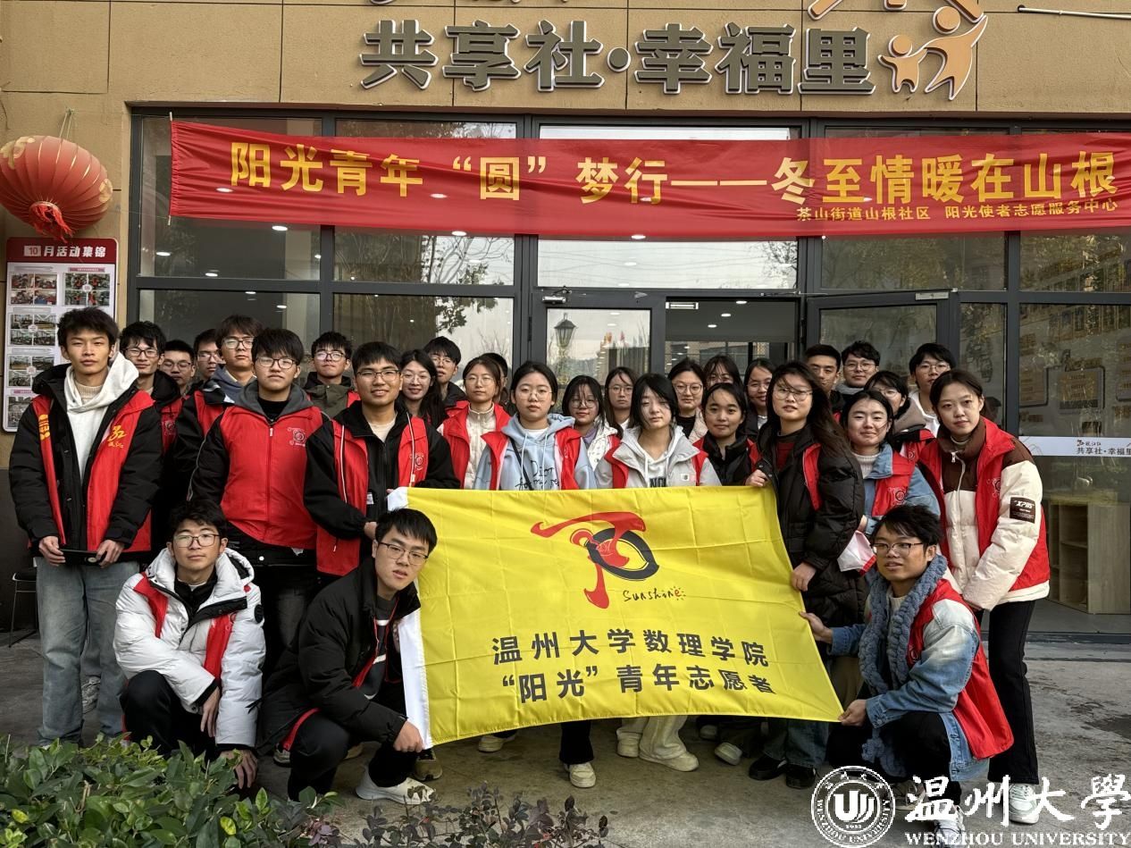 12月18日,温州市瓯海区阳光使者志愿服务中心(孵化于澳门银河官网 数理学院阳光青年志愿者协会)携手茶山街道山根社区,在社区居家养老服务中心开展一场“情暖冬至·共享幸福时光”主题敬老服务活动,为社区老人送去节日的温暖与关怀。
