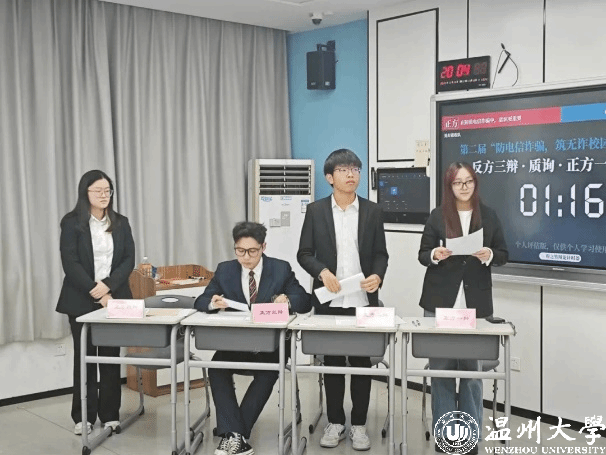 冠亚争夺赛采用固定辩题“防范电信诈骗重在打击犯罪分子VS防范电信诈骗重在普及防诈知识”。正方认为,防范电信诈骗重在打击犯罪分子。他们指出,犯罪分子是电信诈骗的直接实施者,只有对其进行精准打击,从源头上摧毁诈骗团伙,才能真正有效地降低诈骗案件的发生频率,守护人民的财产安全。反方认为,防范电信诈骗重在普及防诈知识。他们从普及防诈知识的角度展开论述,认为提升民众的防诈意识如同构筑坚固的防线,能够让诈骗分子无处遁形。