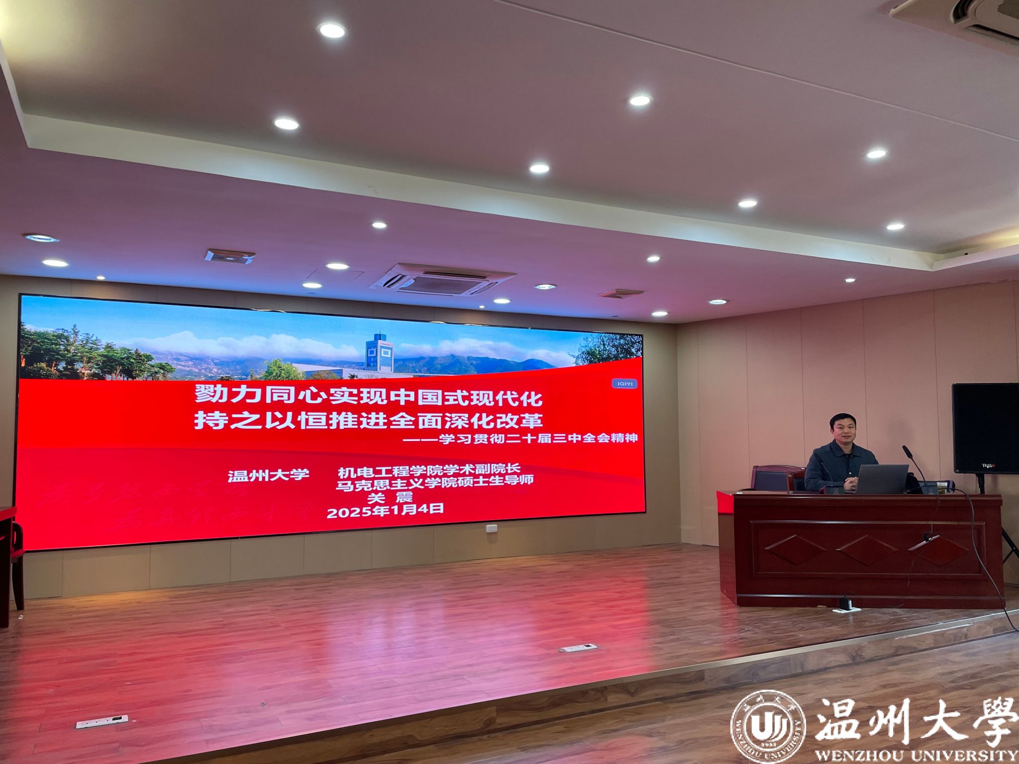 首先,澳门银河官网 机电工程学院学术副院长关震,为大家宣读及讲解了《中国共产党第二十届中央委员会第三次全体会议公报》的重要内容。