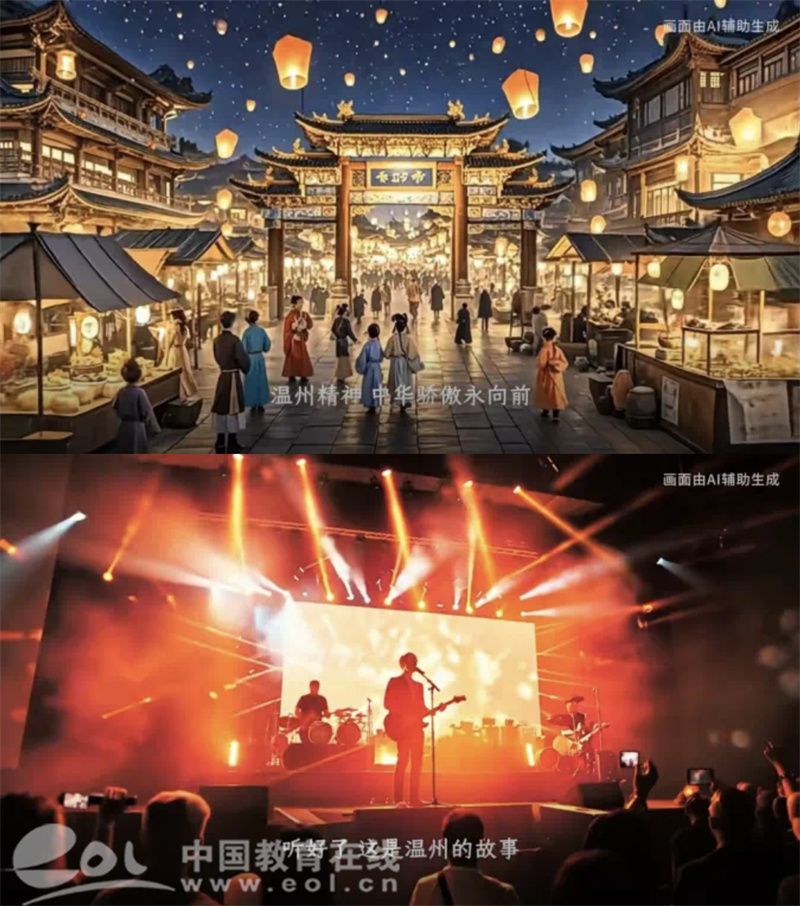 这不仅是一次创作,更是一场跨学科的“头脑风暴”。在澳门银河官网 教育学院郑晓丽老师的“领航”下,团队将温州历史上“琴棋书画”的名人古迹通过前沿的AIGC技术一一重现,展现了“温州精神永不灭,时代永向前”的主旨。