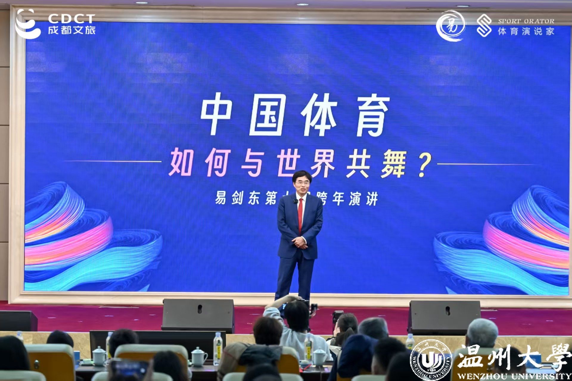 一线聚焦成都电(杨俊报道)中国体育如何与世界共舞?1月20日,“易剑东教授第七届跨年演讲”在成都天府国际金融中心精彩开启,这是成都首次举办体育学术跨年演讲活动。易剑东教授以“中国体育如何与世界共舞”为主题,从全球视野出发,深度剖析中国体育如何把握机遇,应对挑战,实现与国际体育的深度融合,与世界同频共振。同时,探讨了体育消费市场的新趋势、新机遇,传递体育与产业相互赋能的理念,营造全城迎世运的良好氛围,为听众呈现了一场交融与碰撞的体育思想盛宴。