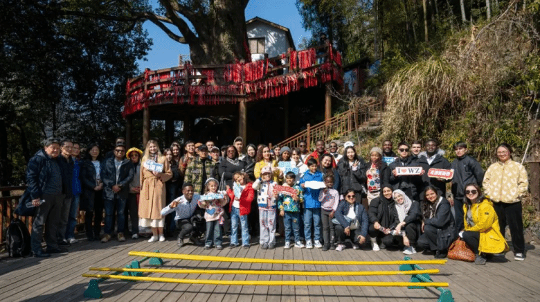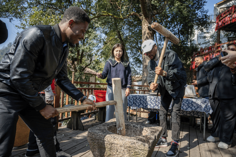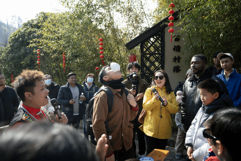 21日,银河 留学生前往文成县西坑畲族镇让川民族村参加了一场别开生面的畲族民俗活动。留学生们在这里体验了拦路歌、竹竿舞、摇锅等传统畲族项目,深入了解了畲族文化的独特之处。同日下午,留学生们还游览了风景秀丽的百丈漈景区。他们的欢声笑语与畲族村民的热情好客交织在一起,共同谱写了一曲民族团结的和谐乐章。“我体验了这里的民俗活动,我最喜欢竹竿舞,我觉得非常新奇、有趣。畲族人民也特别友好。”来自伊朗的留学生诺莎莎,分享了自己的感受。