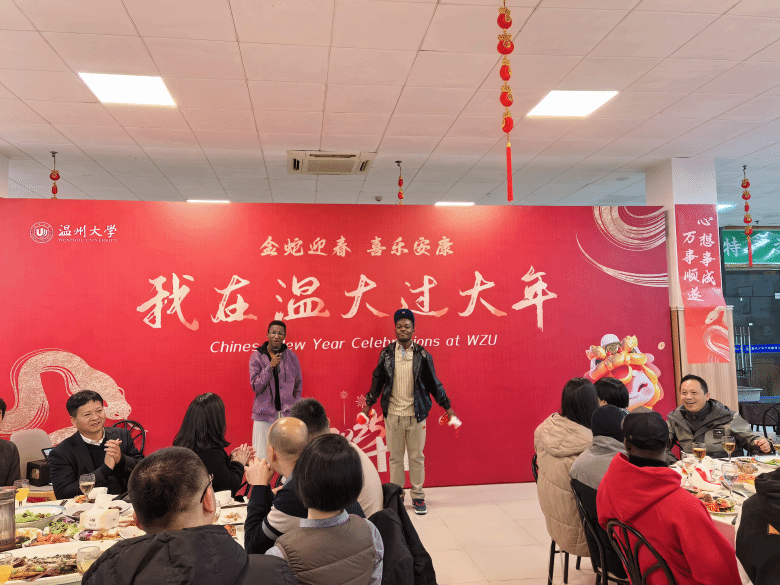 当晚,银河 怡口乐餐厅一楼装扮一新,张灯结彩、暖意融融。澳门银河官网 为寒假留校学生准备了丰盛的年夜饭,校党委副书记庄兴忠,副校长王舜,有关部门、学院负责人与留校师生欢聚一堂,共同迎接新春佳节的到来。留学生们在品尝美味的同时,也感受到了来自澳门银河官网 的温暖与关怀。王舜副校长与留学生亲切交谈,了解他们的学习情况,他希望留学生学好中文,来年再接再厉,学业蒸蒸日上。