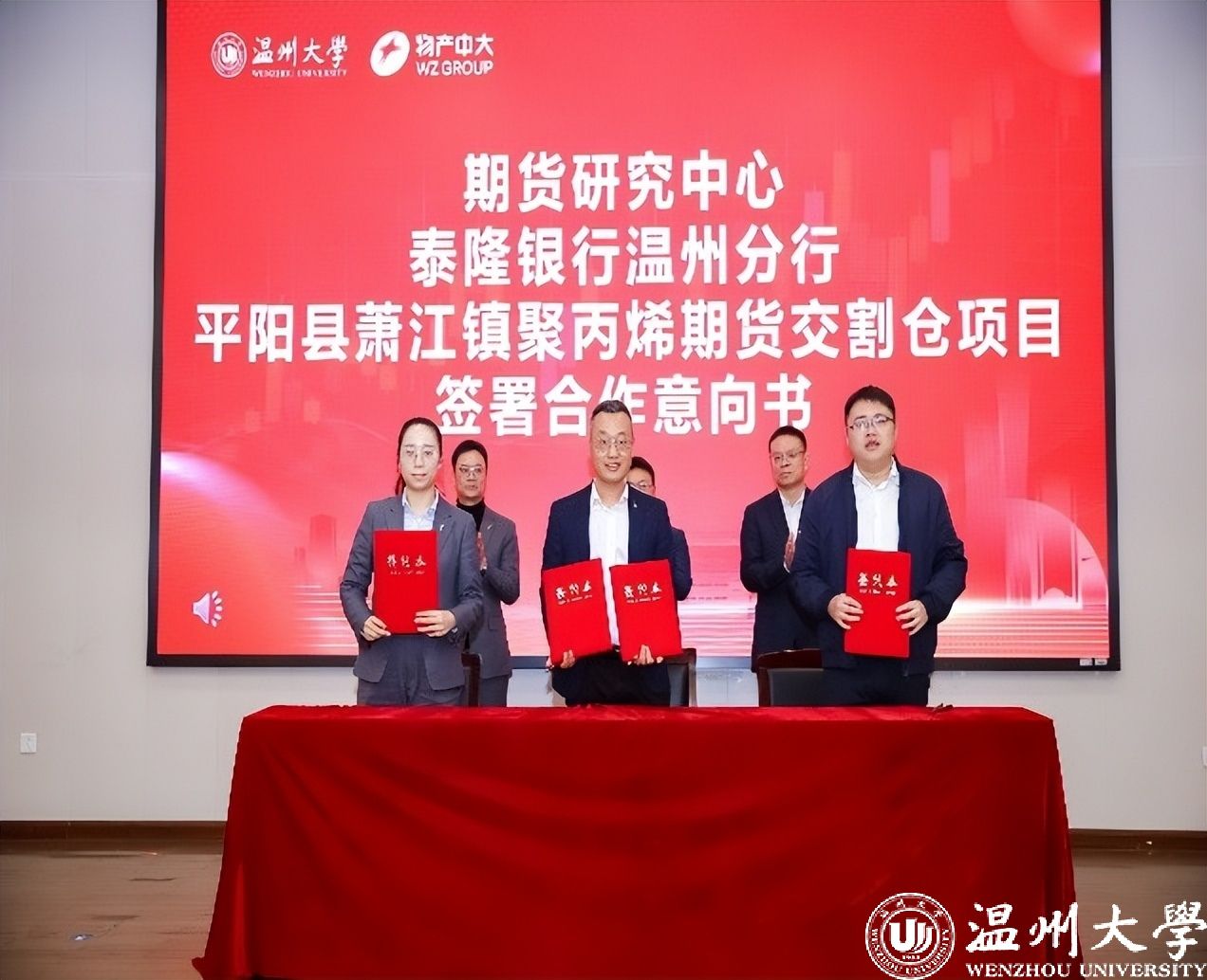 仪式上,双方共同为研究中心揭牌,并与泰隆银行温州分行、平阳县萧江镇聚丙烯期货交割仓签署合作意向书。同时,物产中大期货温州分公司被授予“澳门银河官网 商学院校外实践教育基地”,双方党支部签署党建共建协议,进一步强化组织协同。研究中心还聘请全球衍生品交易大赛冠军谭伟鸿、物产中大期货研究院院长吕洁等专家担任顾问,为科研与实践提供智力支持。