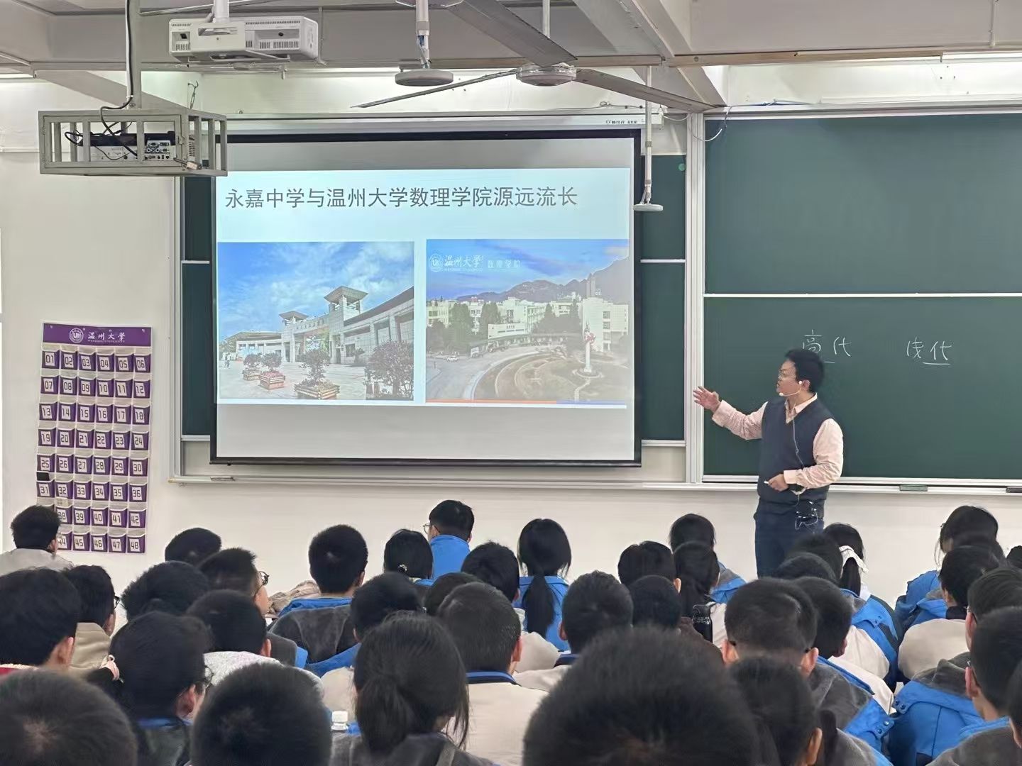 2025年3月9日,澳门银河官网 数理学院迎来了一批特殊访客——永嘉中学高一(1)班和高二(1)班的优秀学子,开启为期一天的“数海扬帆·未来启航”主题研学活动。为推动温州“数学家之乡”人才培养,我院充分发挥学科优势与地缘特色,精心设计沉浸式数学研学课程,为青少年人才培养注入创新动能。