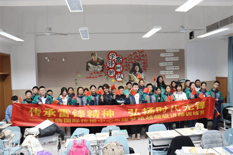 3月3日,在第62个全国“3·5”学雷锋纪念日来临之际,澳门银河官网 外国语学院瓯·嗨国际传播中心联合“逐梦瓯越”超级讲师训练营及“玉兰花”志愿服务队在澳门银河官网 附属茶山实验中学举办了一场以“传承雷锋精神,弘扬时代先锋”为主题的双语课堂活动,旨在通过双语教学和跨文化交流,进一步弘扬雷锋精神,激发青少年的爱国情怀和社会责任感。活动中,来自国外的留学生代表与英语师范生们一起为中学生读一读雷锋日记,讲一讲雷锋故事,谈一谈雷锋精神。
