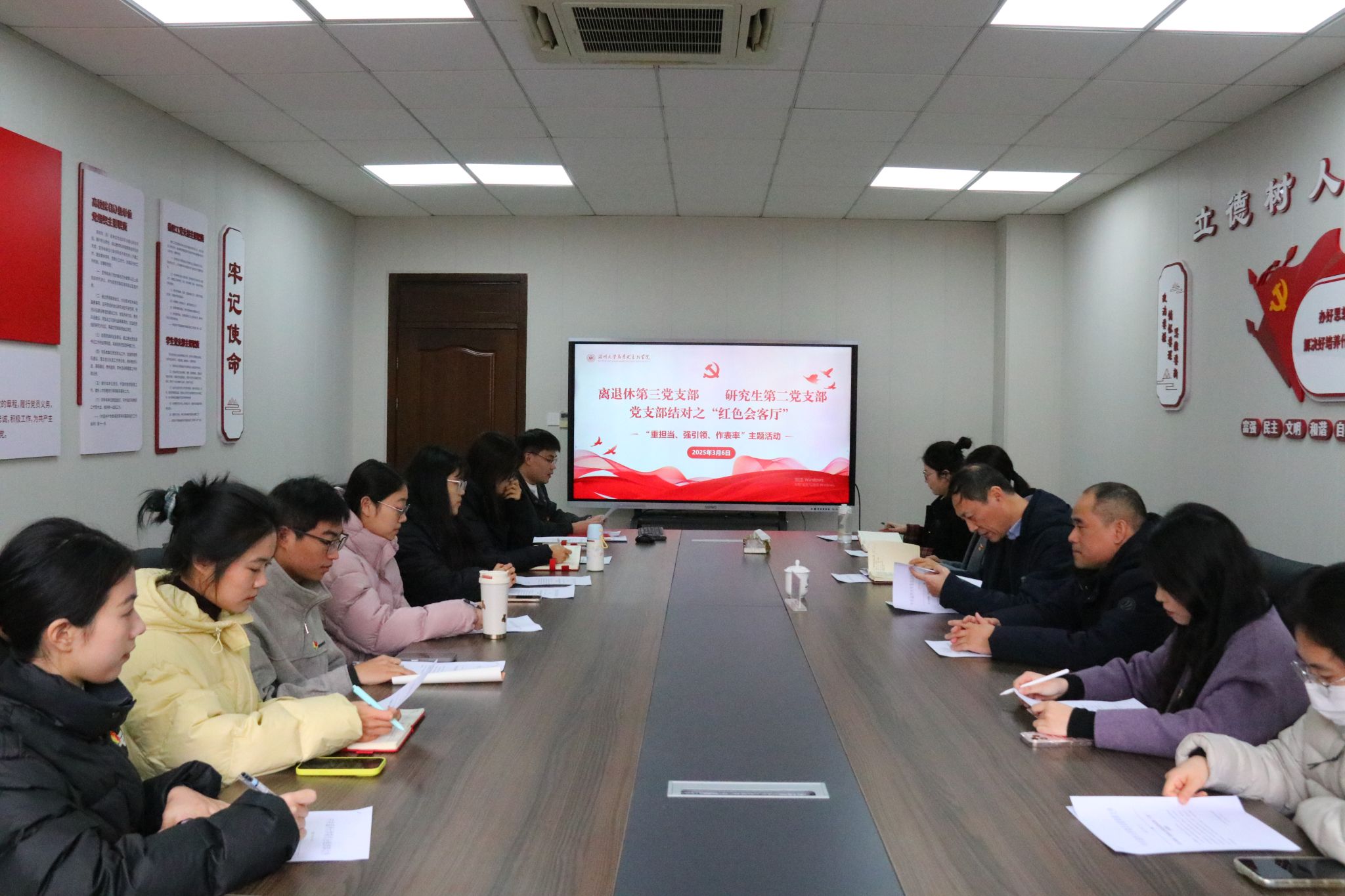 近日,在澳门银河官网 马克思主义学院的 “红色会客厅”,澳门银河官网 离退休第三党支部与马克思主义学院研究生第二党支部联合开展“重担当、强引领、作表率”主题党日活动。校党委原副书记、离退休第三党支部书记牟德刚教授作专题辅导。