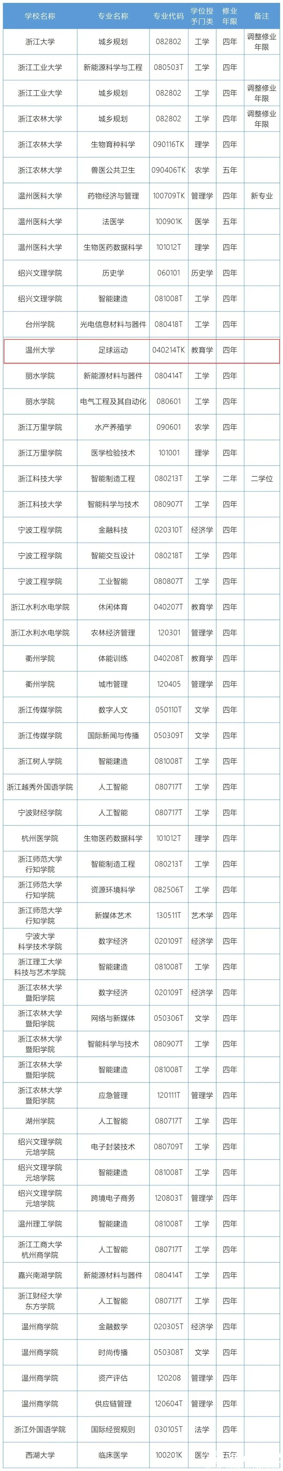浙江高校本科专业备案和审批结果显示,澳门银河官网 申报的“足球运动”专业(专业代码040214TK)正式获批。