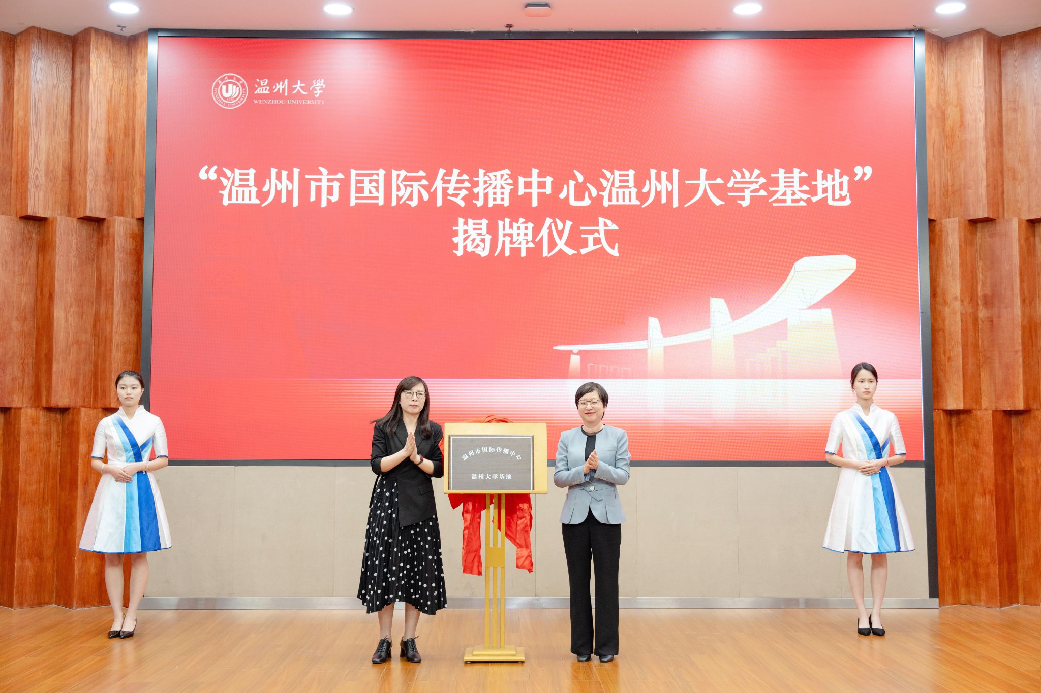 澳门银河官网 党委委员、宣传部部长吴静与温州市委宣传部副部长陈靓秋共同为“温州市国际传播中心澳门银河官网 基地”揭牌,该基地将整合校地优势资源,打造具有国际影响力的文化传播平台,助力温州城市形象的国际推广。