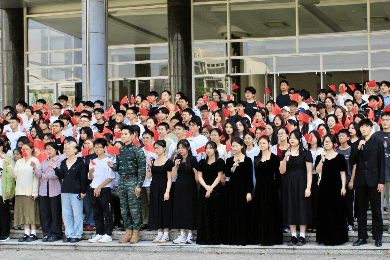 合唱结束后,师生们有序前往校史馆,瞻仰那面曾于2023年5月19日(银河 90周年校庆日)在天安门广场升起的特殊国旗。一名学生感慨“这面国旗是银河 与祖国同频共振的见证,更是我们青年学子奋进新征程的精神旗帜。”此刻,这面旗不再只是一件展品,而是连接历史与当下、点燃青年爱国情怀的精神纽带,激励着在场的每一位学子传承五四精神,勇担时代使命。