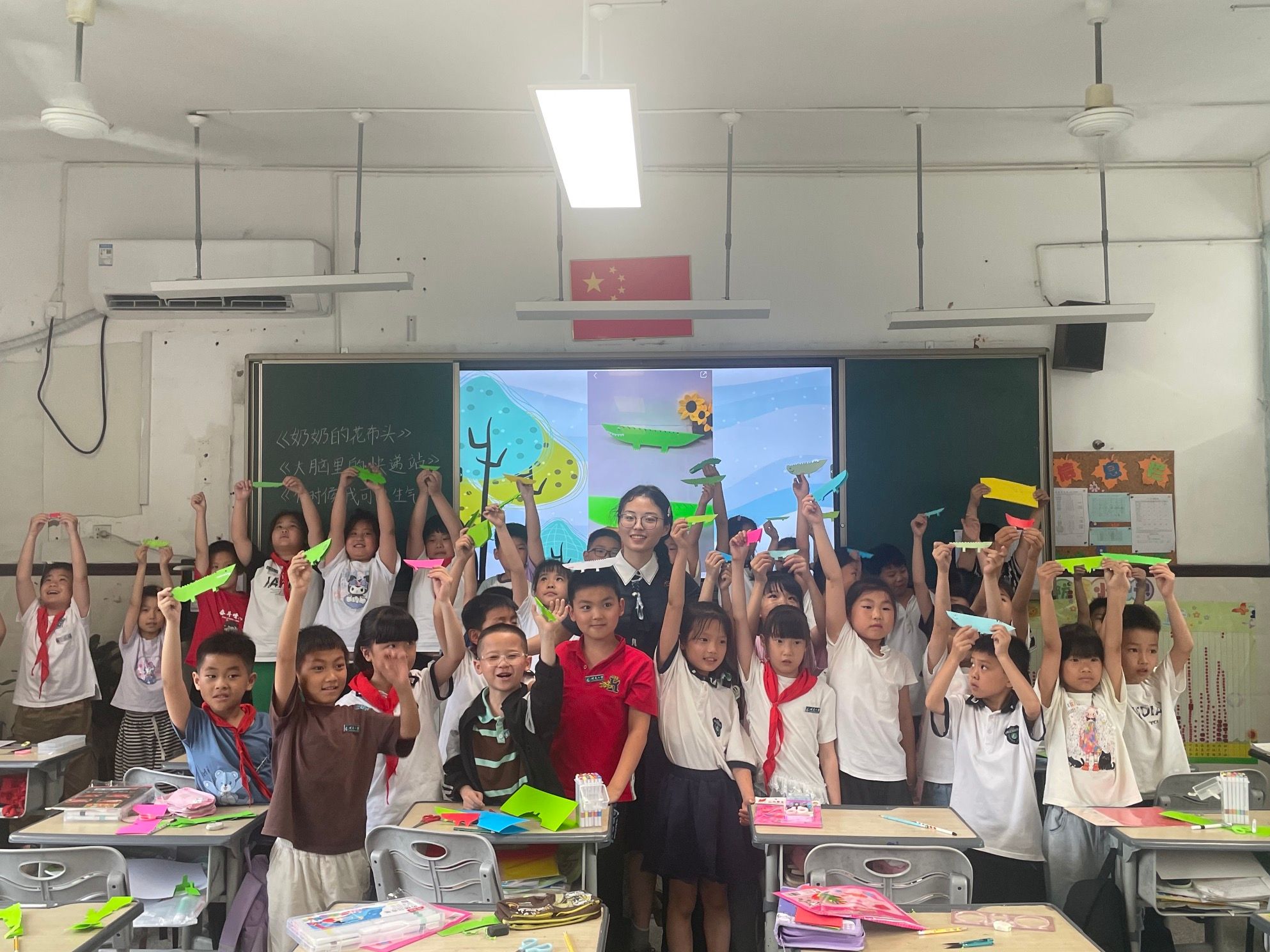 “我要折一座彩虹桥,让所有动物都能成为朋友!”在最后的折纸创作环节,一位小女孩兴奋地展示自己的作品。孩子们的折纸作品充满童趣与创意:有的给鳄鱼折了一条彩虹尾巴,象征它的与众不同;有的用彩纸制作了咕叽咕叽的“保护徽章”,代表着勇气与责任。这些简单却饱含深意的作品,折射出孩子们对包容与共存的朴素理解。谢老师欣慰地轻抚每个孩子的作品,这一刻,教室里流淌着温暖与理解,就像咕叽咕叽带给小鸭们的温暖怀抱。