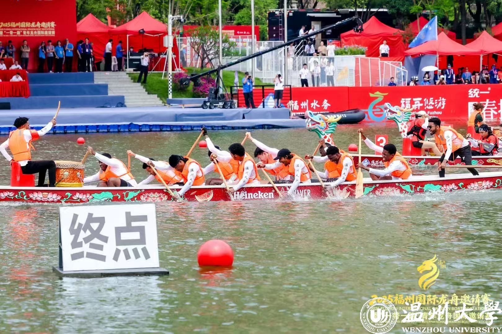 端午期间,2025福州国际龙舟邀请赛暨 “一带一路” 青年龙舟国际邀请赛在福州河举行。13名留学生组成的澳门银河官网 国际龙舟队与来自30个国家和地区的70支队伍同场竞技,在国际及港澳台地区组中斩获小组第一,总成绩第五名的好成绩,充分展现了该校来华留学生积极向上的精神风貌与良好的团队素养。