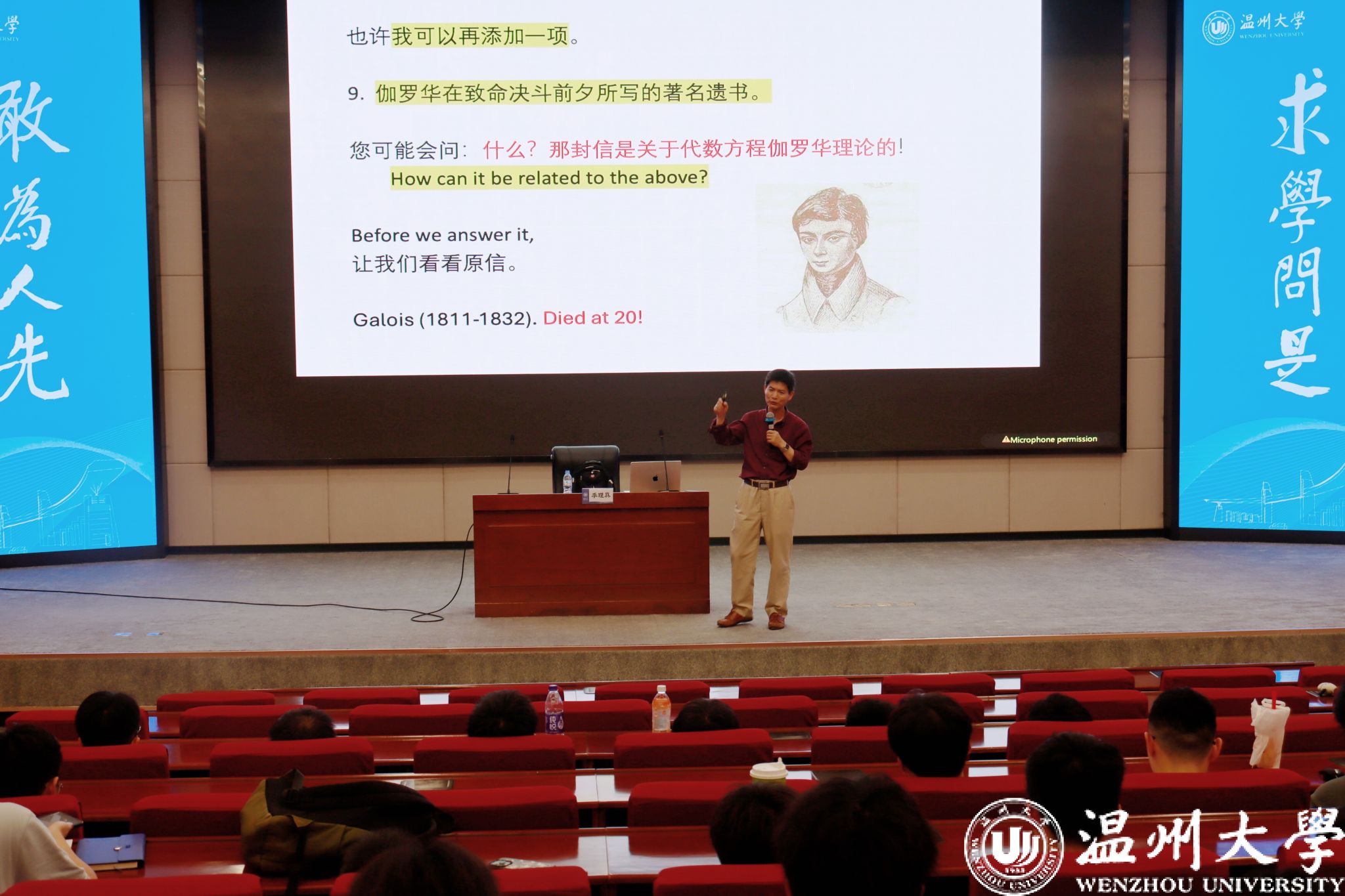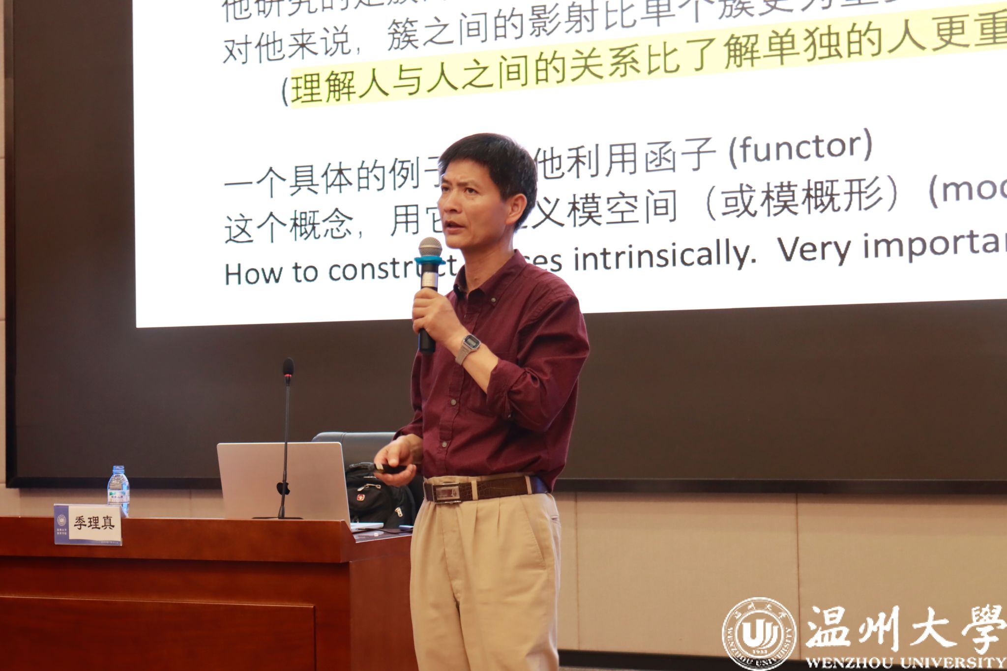6月3日,著名温籍数学家、美国密歇根大学教授季理真受邀到访澳门银河官网 数理学院,指导“数学家之乡”人才培养建设,做客罗山讲堂,在澳门银河官网 育英图书馆二楼报告厅为师生带来题为《单值化定理:它的历史、明及持久影响》的学术讲座。作为“数学家之乡”温州的杰出代表,季理真教授以深厚的学术积淀和独到见解,为师生们呈现了一场数学史与现代数学交融的思想盛宴。