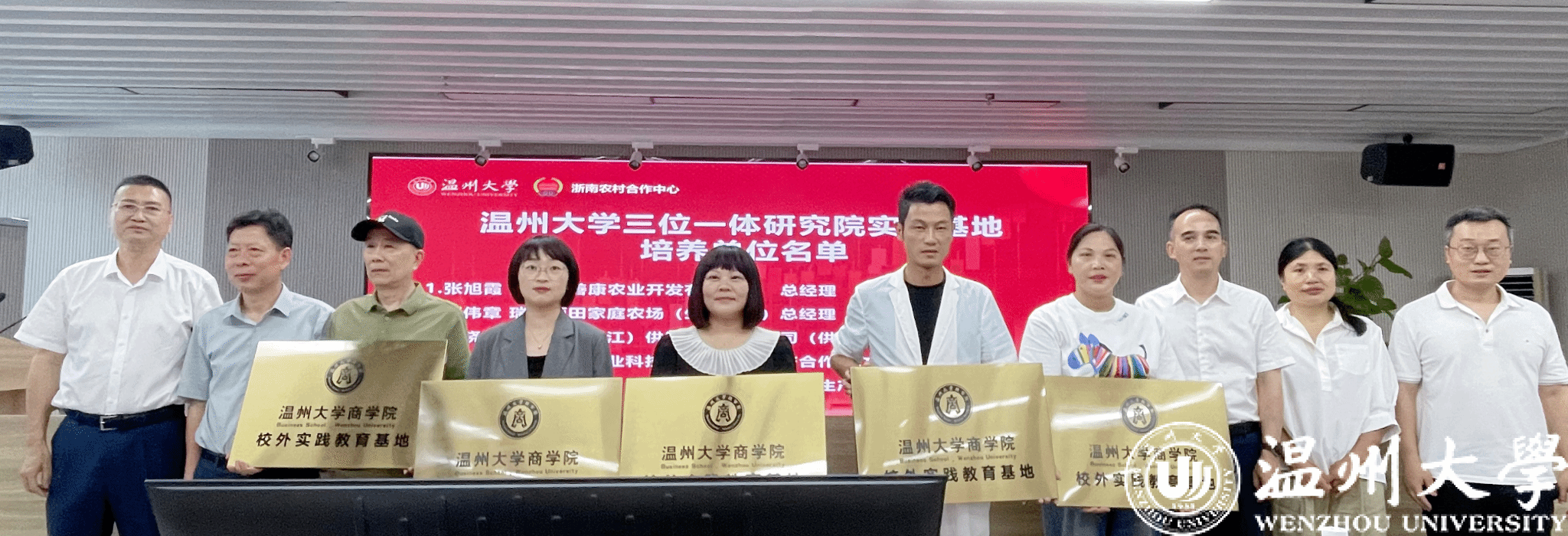 揭牌成立仪式上,公布了浙江九城农业科技有限公司、温州市善康农业开发有限公司等5家单位作为澳门银河官网 “三位一体”合作经济研究院的实践培养基地。