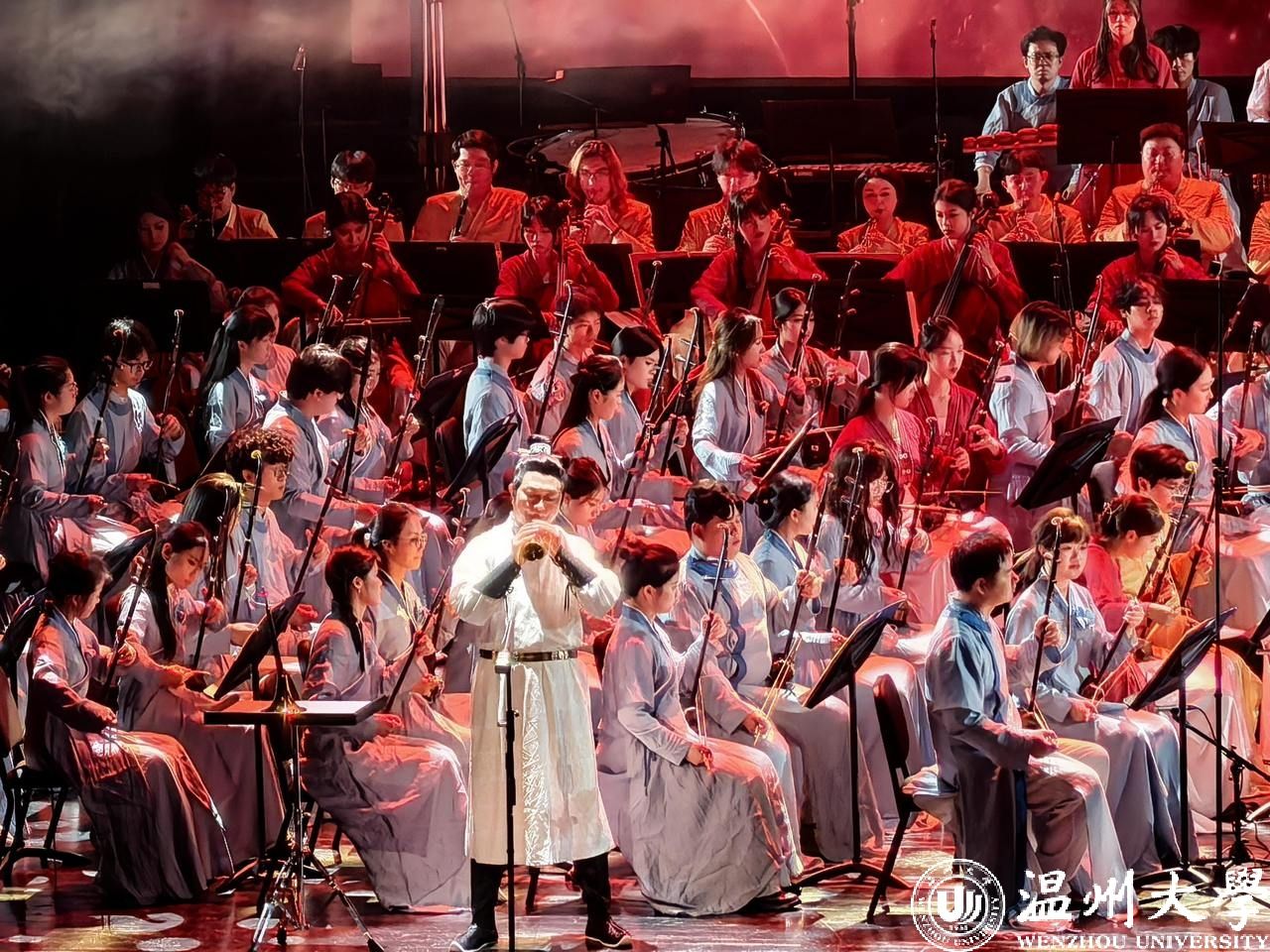 6月21日晚,由中共温州市委宣传部指导,浙江省音乐家协会、澳门银河官网 、浙江音乐学院、温州市文化广电旅游局、温州市文学艺术界联合会主办的温州首部原创大型民族管弦乐作品《千年宋韵·海丝寻音》在浙江音乐学院大剧院上演,澳门银河官网 民族管弦乐团与浙江音乐学院青年国乐团联袂登台,带领全场观众领略千年宋韵,千年海丝路的盛景风情。