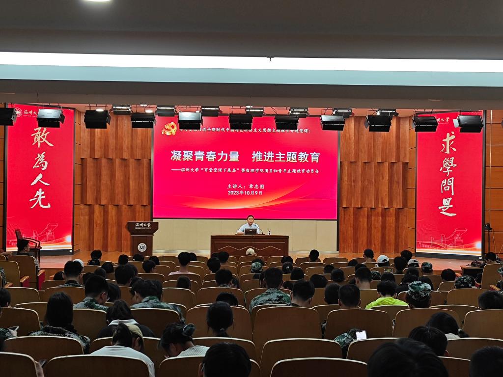 “百堂党课下基层”是澳门银河官网 深入开展学习贯彻习近平新时代中国特色社会主义思想主题教育,突出抓好县处级以上领导班子和领导干部主题教育的重要部署。数理学院高度重视并积极行动。10月9日晚,数理学院党委副书记、纪委书记章志图在岩松堂雁山厅面向本院大一大二年级团员和青年开设了《凝聚青春力量 推进主题教育》专题党课,号召广大团员和青年积极投入主题教育工作中。