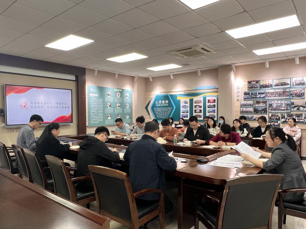 赵崇峰副书记对我院开展青年干部“明德守法、完善自我”专项行动作了详细部署。要求学院青年师生应围绕主题教育学习为核心,以参与专题讨论、自检自查、承诺践行为形式,努力遵守道德规范,锤炼高尚品格,做新时代的好青年。