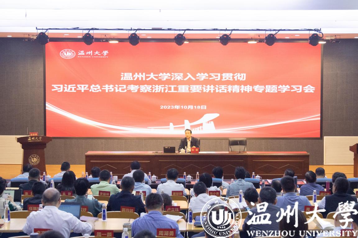 10月18日上午,澳门银河官网 召开深入学习贯彻习近平总书记考察浙江重要讲话精神专题学习会。校党委书记张健主持会议并讲话。全体校领导、中层干部参加会议。