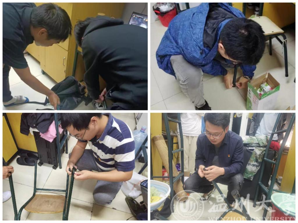 “你们真是太给力了,现在终于不用担心自己挪动椅凳的噪音影响到室友和楼下同学的学习生活了。”来自电气工程专业的陈同学与正在宿舍安装静音脚垫的学生党员们聊起了在开学初学院领导走访调研学生寝室时,他反映了一个目前寝室急需解决的现实问题,那就是室里的椅子挪动时经常发出异响,影响彼此学习生活。“事虽小,却暖心!‘给椅凳穿新衣’这件实事真是办在了学生心坎上。”在安装完静音脚垫后,党员们再三检查,做好了最后的打点,并表示这次党员实践活动很有意义。“为全体学生寝室的椅凳安装静音脚垫,是从细微着手破难题,打造静音宿舍,让学生安心潜精研思的有力举措,更是一次暖人心的‘惠生’行动”。来自电气与电子工程学院本科生第二党支部书记、辅导员潘龙飞说。