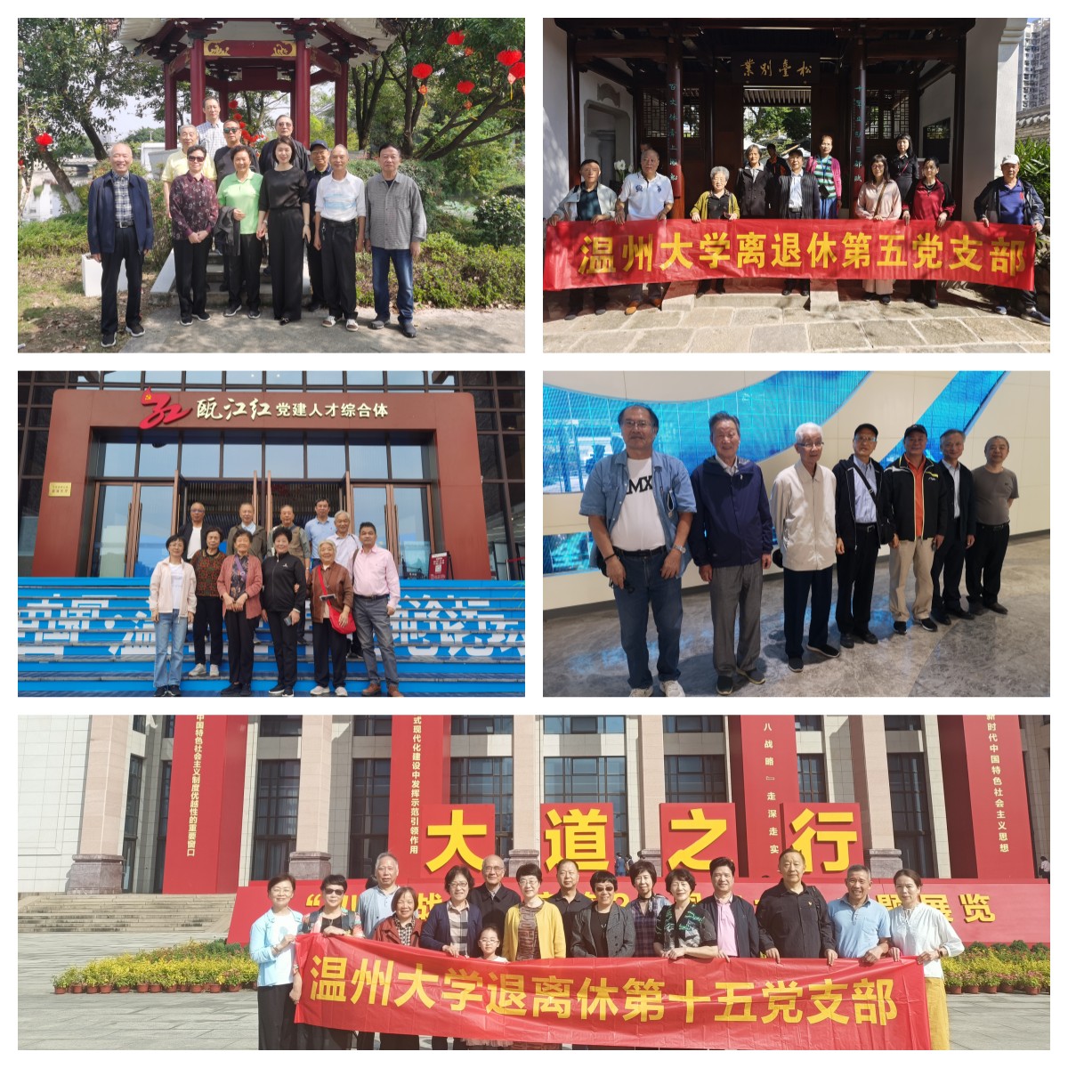协助各支部通过实地研学、参观见学等方式开展考察调研,并计划陆续对接“循迹溯源学思想促践行”示范点开展现场学习。离退休第三党支部在平阳温师旧址进行主题教育集中理论学习的同时,开展“走看促”活动,先后参观澳门银河官网 平阳智能制造研究院、温师旧址纪念馆的“黄溯初专题馆”和“浙江省立温州师范澳门银河官网 旧址陈列馆”。离退休第五党支部赴位于九山湖畔的松台别业开展主题党日活动。离退休第九党支部赴三垟湿地在习近平总书记亲自栽种的大榕树下开展“循迹溯源学思想促践行”主题党日活动。离退休第十一党支部开展热学热议习近平总书记考察浙江重要讲话精神之后,组织党员同志们参观温州市规划展示中心。离退休第十五党支部赴浙江展览馆参观“大道之行——‘八八战略’实施20周年大型主题展览”。各支部在考察调研中不断加深对党的创新理论的理解,将理论学习向实践运用进行转化,在深学细悟中提高理论素养、坚定理想信念、升华觉悟境界。