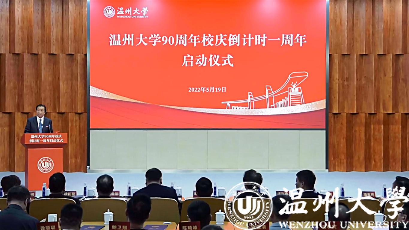 On the afternoon of May 19, the Ceremony of the One-year Countdown to the 90th Anniversary of founding of Wenzhou University, moderated by Vice President Cai Shuguang, was held in the campus. The leadership, representatives of retired staff, heads and deputy heads of the working group for the preparations for the 90th anniversary, heads of colleges and departments, representatives of alumni, teachers and students attended the ceremony offline, and the alumni and people from all walks of life joined the event via video links.