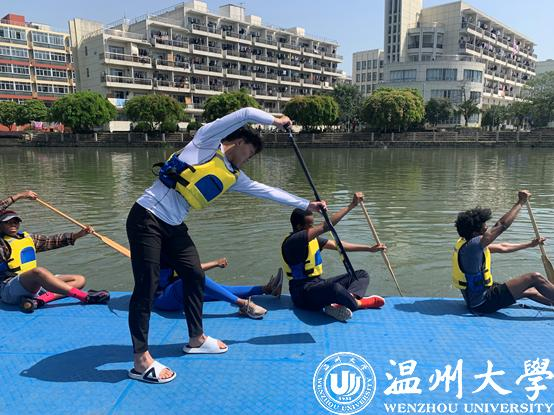 From the warm-up exercises to technical exercises, the coach of the Wenzhou University Water Sports Team meticulously taught this group of international students. Before getting on the boat for practice, the coach also explained to the players the precautions in the training and the rules of the game in detail. Through more than two hours of practice, the players basically mastered the basic skills of dragon boating, and also had a competition with the teams from other colleges.