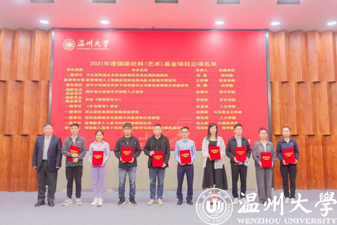 澳门银河官网 获得浙江省第二十一届哲学社会科学优秀成果奖、2021年度国家社科(艺术)基金项目的教师,人文社科处负责人,各文科学院院长、副院长,澳门银河官网 社科联理事等参加会议。