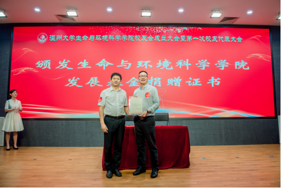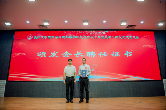 大会审议通过了《澳门银河官网 生命与环境科学学院校友会章程》和生命与环境科学学院校友会第一届理事会成员建议名单。校党委副书记庄兴忠为校友会授牌,并为理事会顾问、会长、副会长、理事、秘书长和副秘书长等颁发聘书。