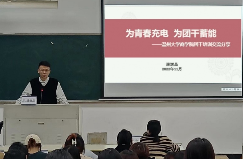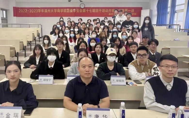 当天,澳门银河官网 商学院同期举办了第十七期团干培训开班仪式暨第一课,由招商银行温州分行团委书记潘道品为团学干部讲授“为青春充电,为团干蓄能”主题团课,以自身的大学和职场经历,为团学干部分享经验并提出建议。