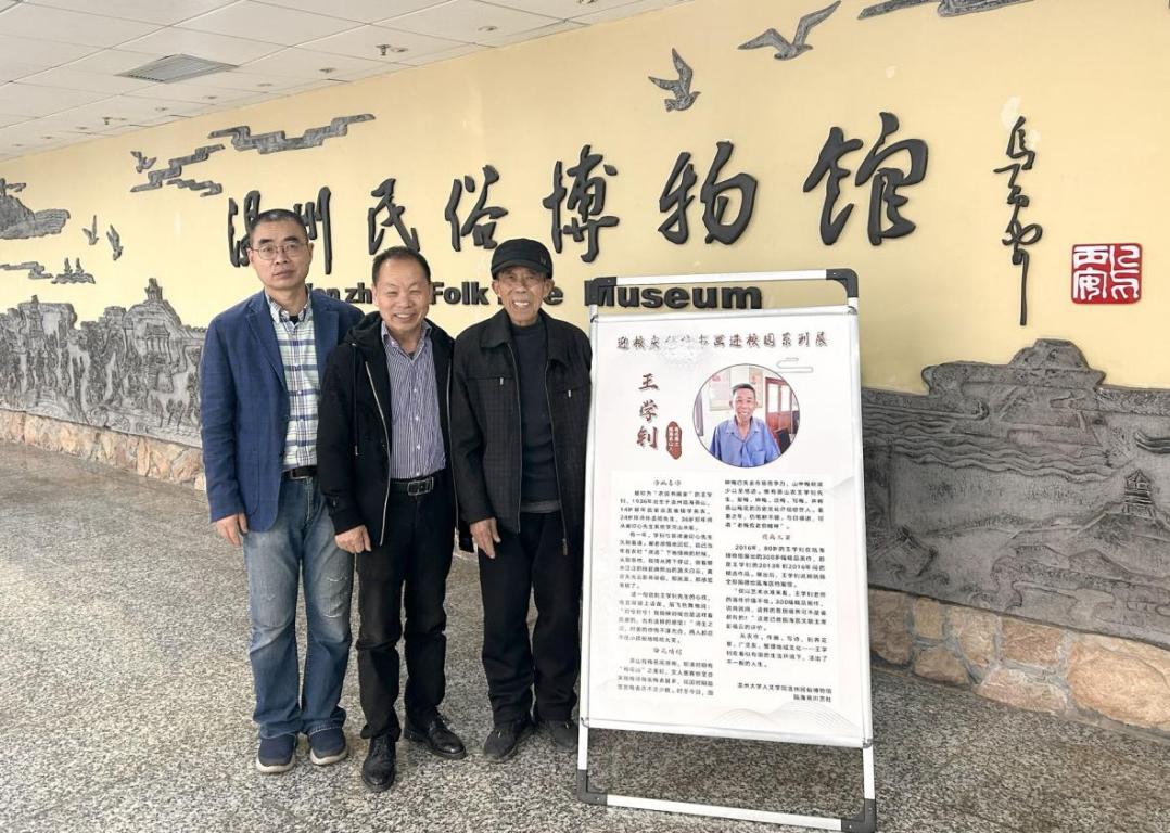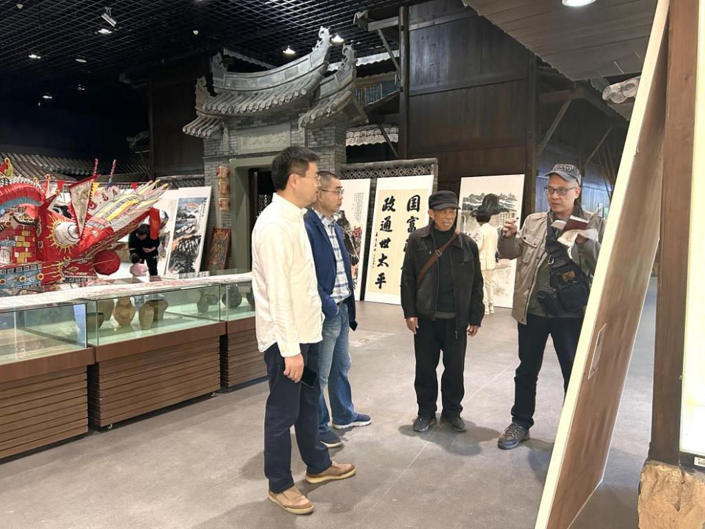 泉川艺社社长、茶山街道新乡贤联谊会秘书长王大普、“农民书画家”王学钊与澳门银河官网 温州民俗博物馆万军合影