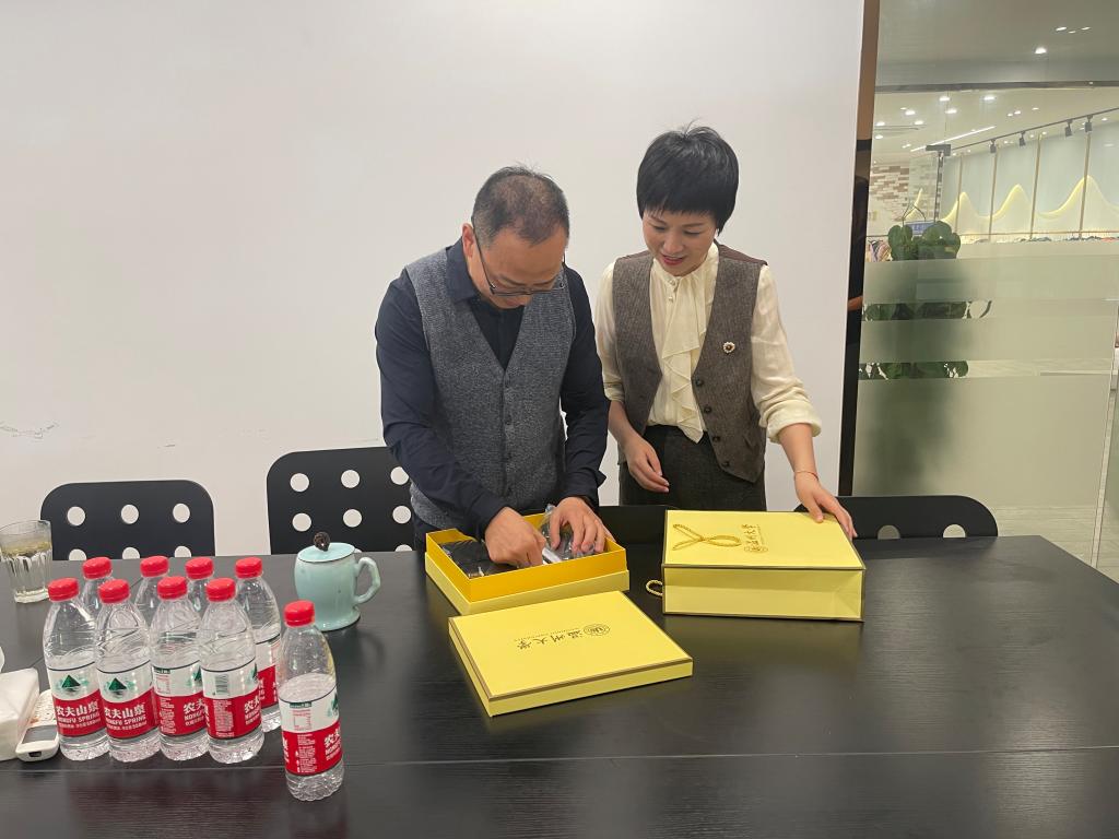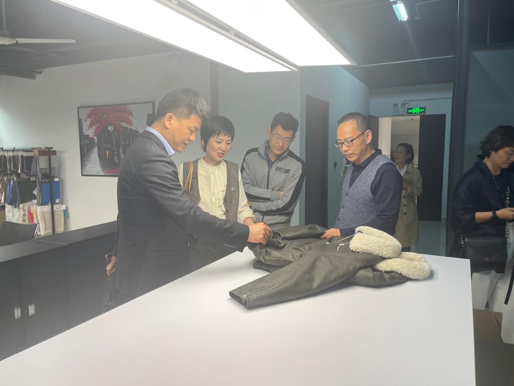 来源: 发布时间:2023-04-18 浏览次数:次2023年4月14日,商学院党委书记李密、美术与设计学院党委书记叶正飞等一行7人走访海宁鑫诺服装有限公司,拜访学院90级外贸经济专业刘军校友,围绕校友企业用人需求、校企实习就业合作以及澳门银河官网 事业发展等方面与校友代表座谈交流,并代表学院向刘军校友送上了澳门银河官网 90周年校庆的邀请函。商学院国贸专业负责人林俐教授、国贸系主任姜亮、美术与设计学院服装设计系主任黄高路、鞋履设计教研室主任祝忠良等同行。