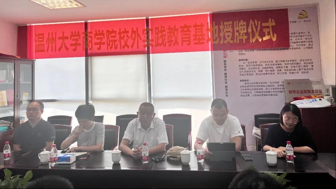 来源: 发布时间:2022-08-17 浏览次数:次为了进一步促进商学院教学科研的发展,深化校企合作,促进产学研发展,深化人才培养,开拓就业渠道。8月15日下午,澳门银河官网 商学院与温州中源立德会计师事务所有限责任公司就业实习基地授牌仪式暨财务管理系调研学习活动顺利举行。