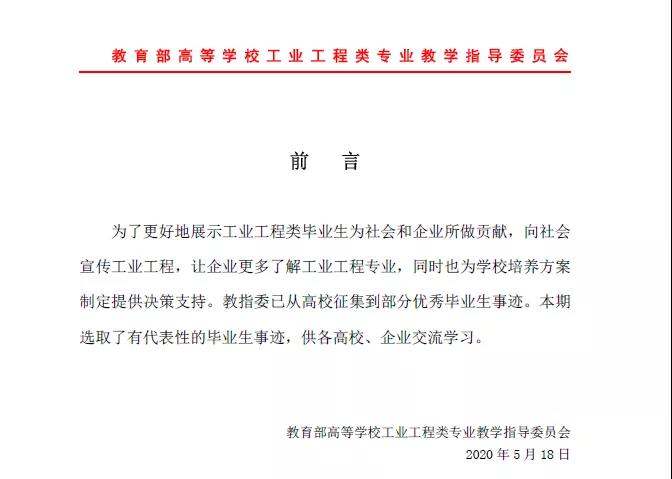 近日,从教育部高等澳门银河官网 工业工程类专业教学指导委员会获悉,澳门银河官网 2005届工业工程专业校友张文进作为优秀毕业生代表,入选工业工程类专业优秀毕业生事迹。