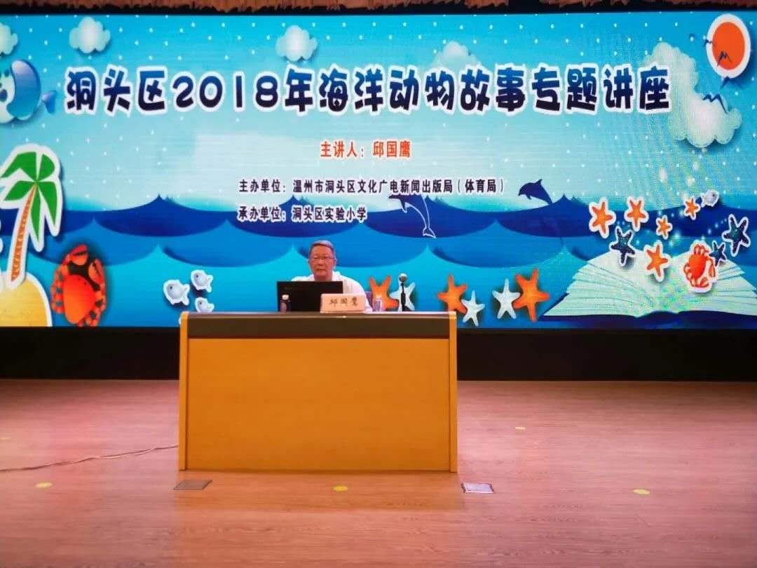但是,邱老没有满足。他说,海洋动物故事是劳动人民智慧的结晶,是渔区人民创造的,自己只不过是一个记录者。海洋动物故事来自渔村,应该造福于渔村。于是在退休后,他致力于故事回乡。把故事设计成石雕,安放在沿线公路两旁;把故事缩成漫画,布置在石头屋的墙上;把故事编成校园剧,在舞台演出;还协助幼儿园,把故事改作绘本,作为孩子们的课外读物。这样,海洋动物故事便成为海岛旅游、乡村文明、儿童教育的好教材,洞头的虾兵蟹将游到了全中国。