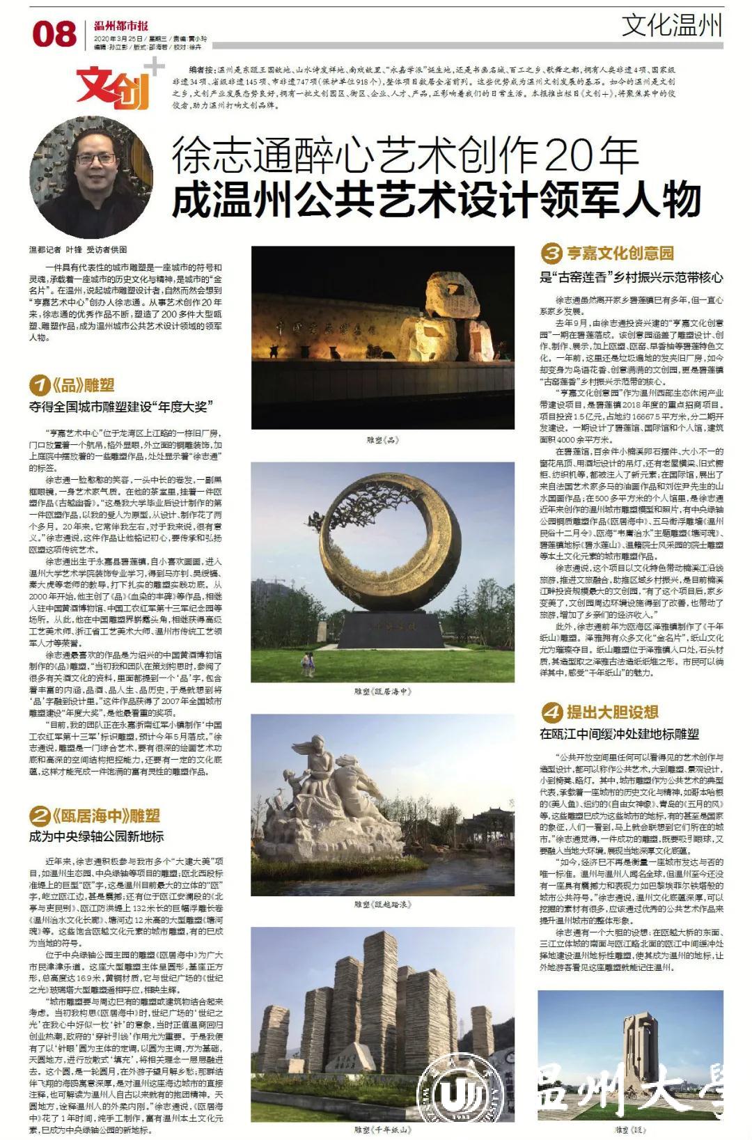 徐志通:从事艺术创作20年,塑造温州公共艺术设计领军人物