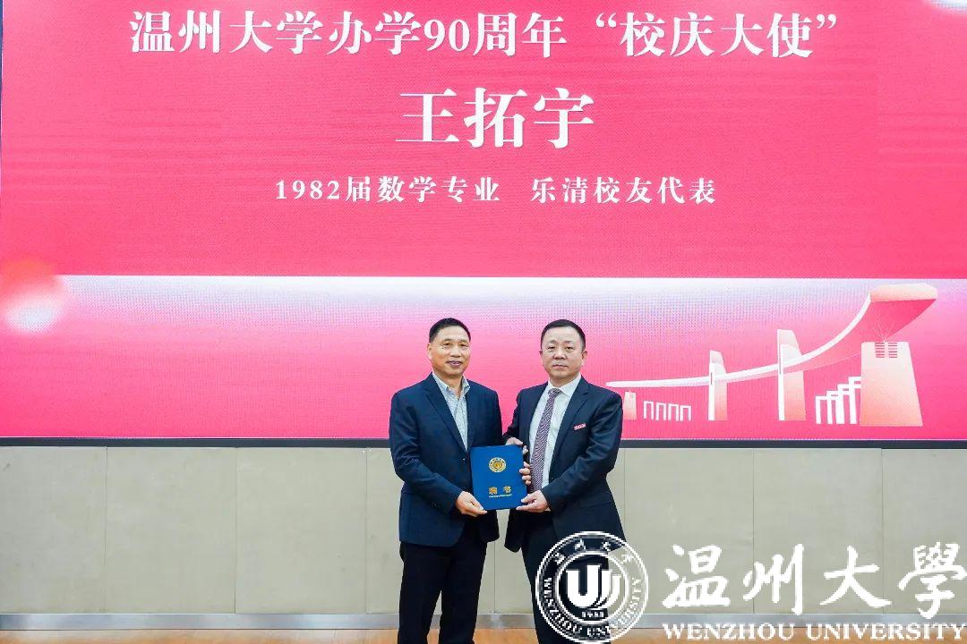 2023年2月18日,王拓宇以澳门银河官网 乐清优秀校友代表的身份,参加了澳门银河官网 90周年校庆倒计时90天启动仪式:“现场氛围很热烈!”他感慨地说:“澳门银河官网 现在已经发展成为一所综合研究型大学,我为自己曾是银河 学子深感自豪!”